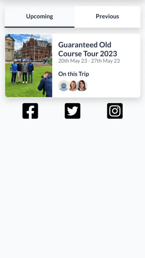 The main navigation page displays all vacations that the client has booked with St Andrews for Golf. This includes upcoming and previous vacations. This previous vacations allows clients to view the itinerary of all previous vacations that they have been on with St Andrews for Golf.