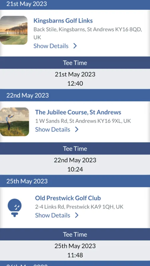 2. Course details – lists all golf courses that will be played, including date, tee time, and any additional information about their golf reservations