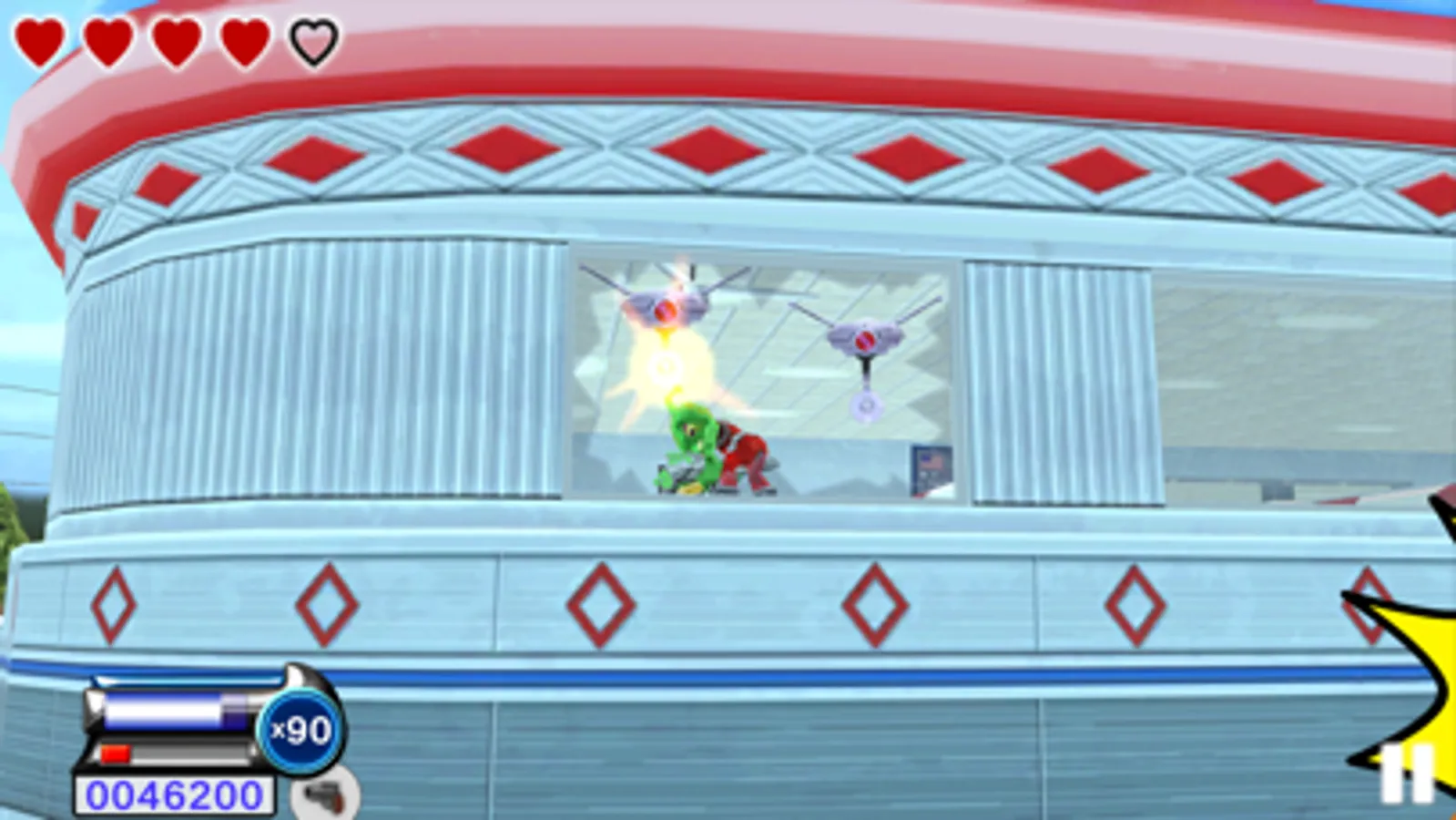 Battle a horde of loony Martian invaders in this first person shooter game. Packed with non-stop action, players will use a range of powerful weapons against a gang of colourful and comical enemy invaders. Collect powerups and rescue helpless civilians to get high scores and earn achievements.