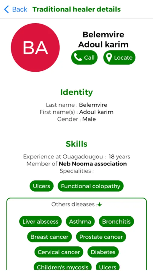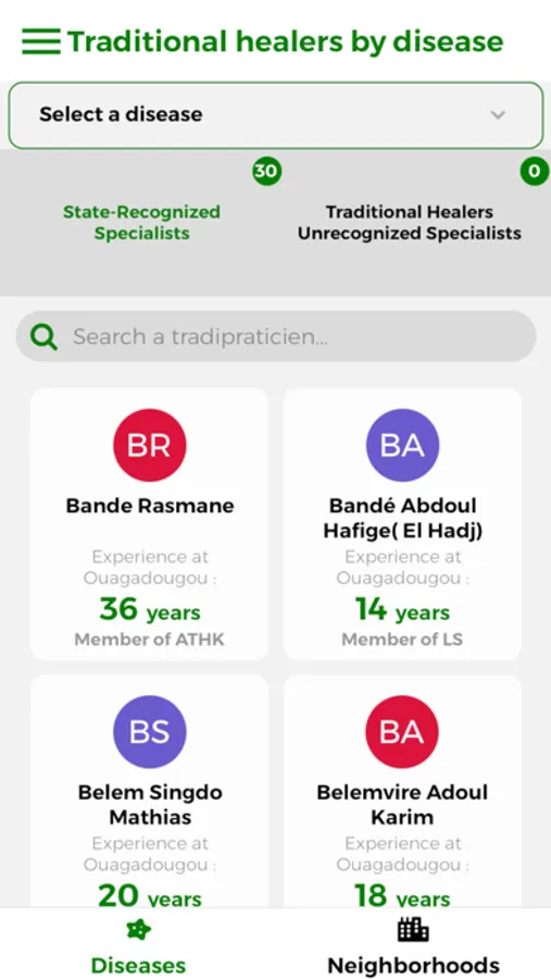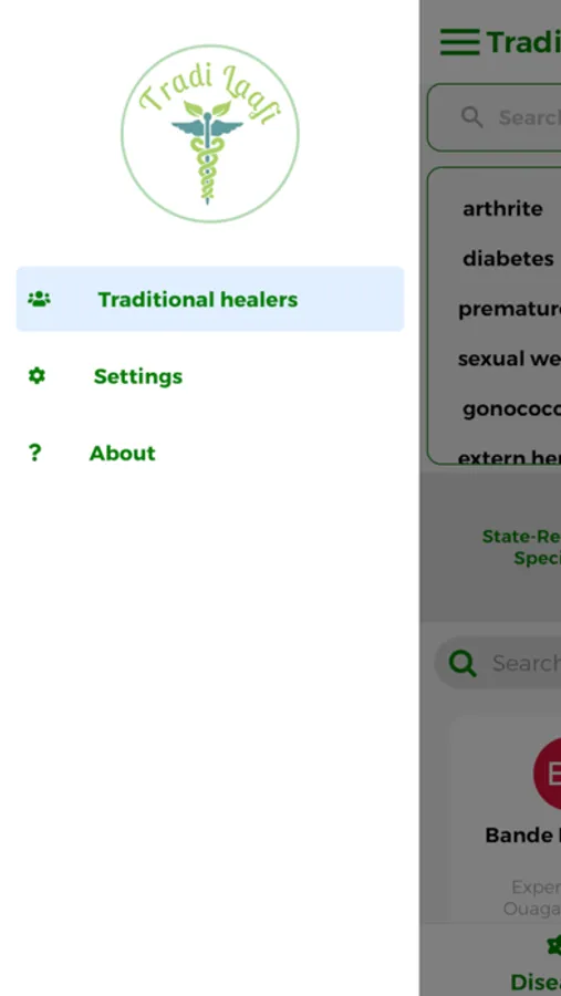 Tradi Laafi est application simple et conviviale qui vous permet de trouver les tradipraticiens situés dans la ville de Ouagadougou selon leurs positions geographiques et leurs spécialités, vous permettant à travers leurs adresses (téléphoniques et géographiques) d'entrer en contact avec eux.