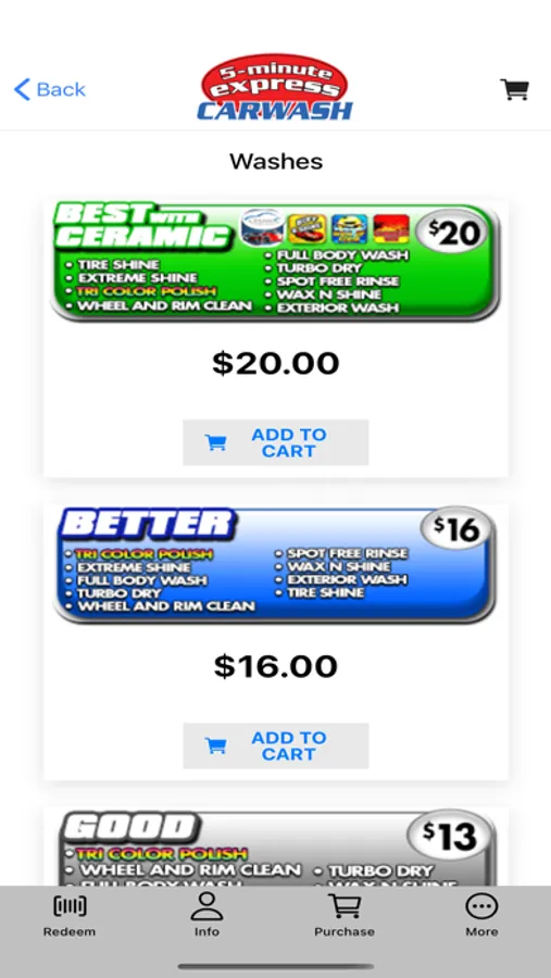 5-Minute Express Car Wash is the new, easy-to-use app that provides you with access to the area’s finest car washes. Use our mobile app to create your own secure account to purchase individual washes, book of washes, gift cards and to join subscription based wash clubs. You can add a credit card to your mobile app and make future purchases with just a card on file without having to open your wallet again. At the car wash, you can redeem your purchased wash remotely without rolling down your window to touch the screen. Simply enter your wash code or scan the barcode displayed in the app. You may also view a visual history of your purchases including date, time, service purchased, and remaining washes if a wash book is purchased. 5-Minute Express Car Wash combines convenience and technology to keep your vehicle sparkling!