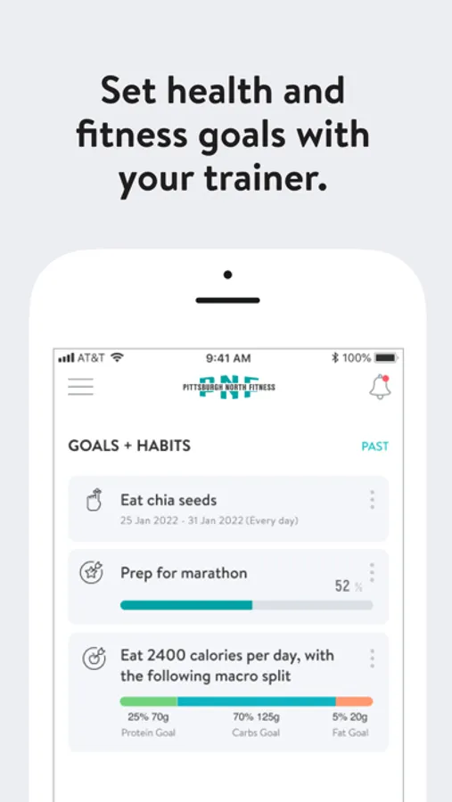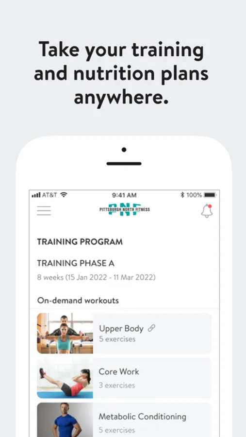 With the Pittsburgh North Fitness App, you will have access to workout programs designed specifically to help you reach your fitness and health goals! You can follow & track your workouts, your nutrition, your lifestyle habits, measurements and results–all with the help of your coach.