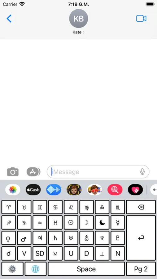 When using an app, the iPhone/iPad will show a Globe icon or button at the bottom. By holding on it, you can choose which keyboard you want to use. Select Astro Input and start writing with the astrological symbols!
