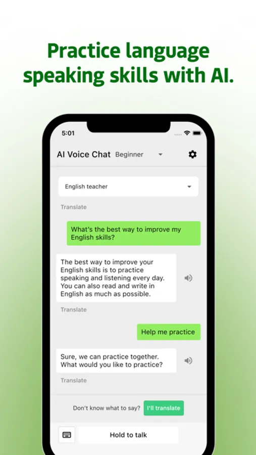 High-quality text-to-speech: Experience the most realistic and clear voice quality, making your practice sessions feel like real conversations.