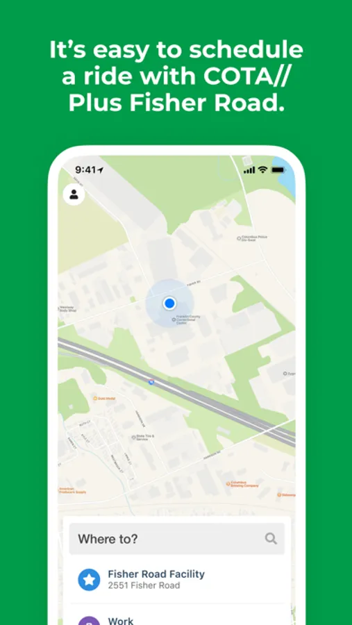 COTA//Plus Fisher Road is a COTA//Plus service, which integrates technology with a transportation solution to connect customers at the Franklin County Corrections Center on Fisher Road to four stops: