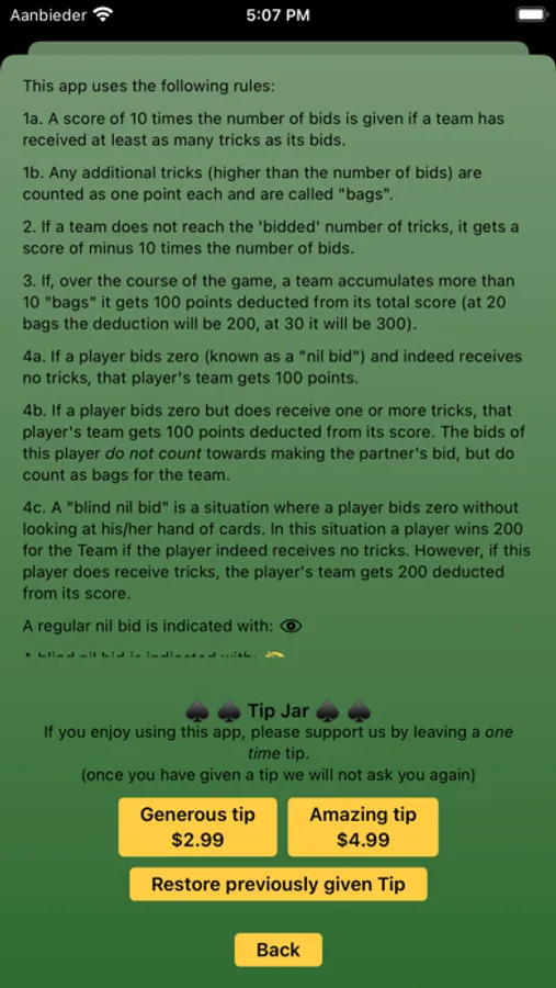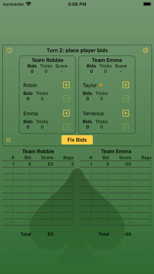 The easy way for keeping scores during a game of Spades. Supports 4 players and 2 teams.