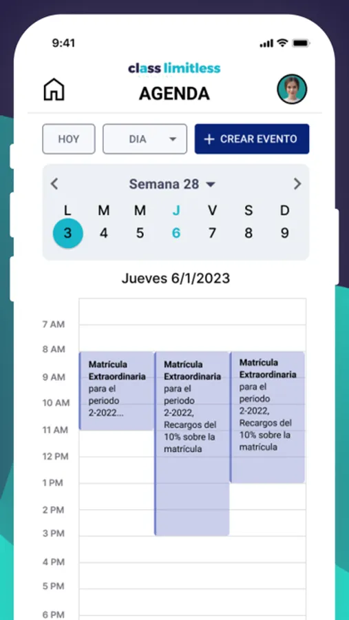 - Agenda: permite mantener informada a la población estudiantil y de profesores sobre los eventos institucionales agendas, así como de los diferentes eventos y tareas que cada profesor puede crear para sus grupos asignados.