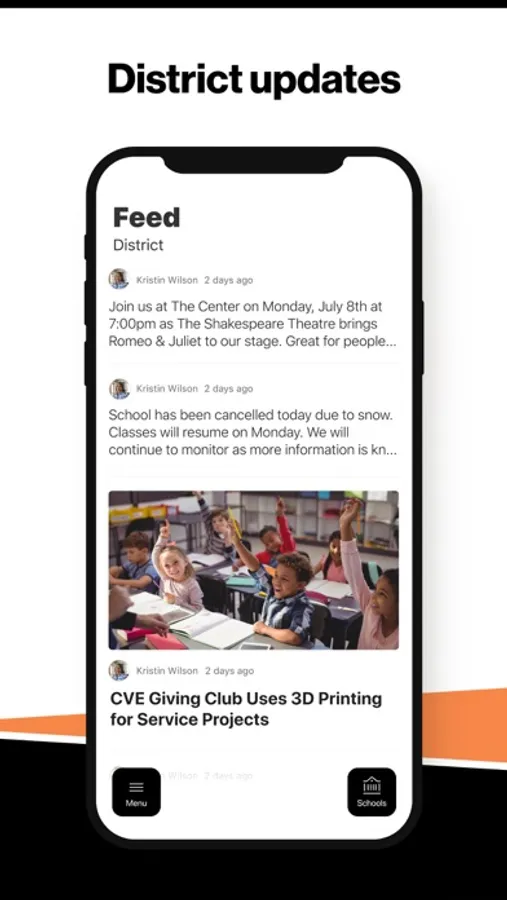 In the Live Feed is where you'll find updates from the administration about what's going on in the district right now. Whether that's celebrating a student's success, or reminding you about an upcoming deadline.