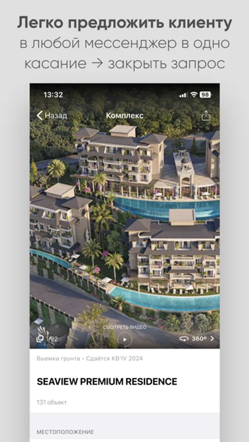 Чтобы легко отправить в мессенджер ссылку на лот или строительный проект — нажмите иконку "Поделиться". С такой же легкостью вы можете отправить любую фотографию или планировку.