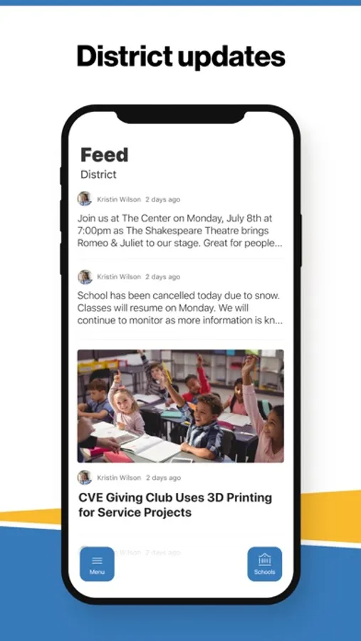 In the Live Feed is where you'll find updates from the administration about what's going on in the district right now. Whether that's celebrating a student's success, or reminding you about an upcoming deadline.