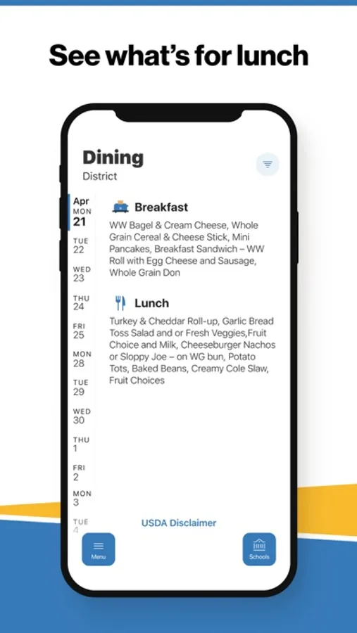 Within the dining section, you'll find an easy to navigate, weekly menu, sorted by day and meal type.