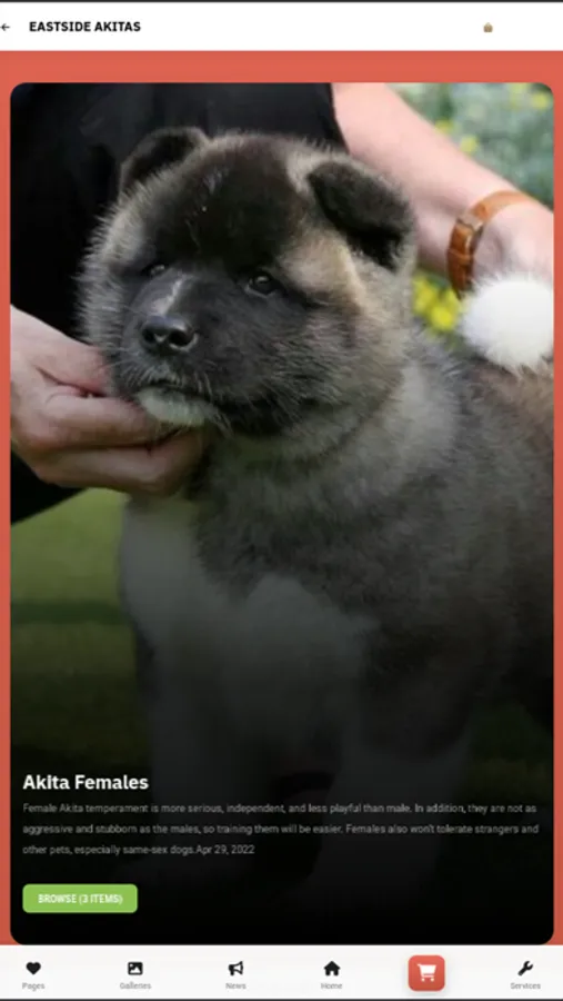 Our goal at Eastside Akitas is to raise Akitas who have correct breed type and sound structure per the AKC breed standard, have balance and stability in temperament and have the versatility and adaptability to enjoy other activities, jobs and sports with their families. Performance is a big focal point of our dogs and breeding program and its been a fun ride so far. We believe in quality over quantity and do not breed litters often.