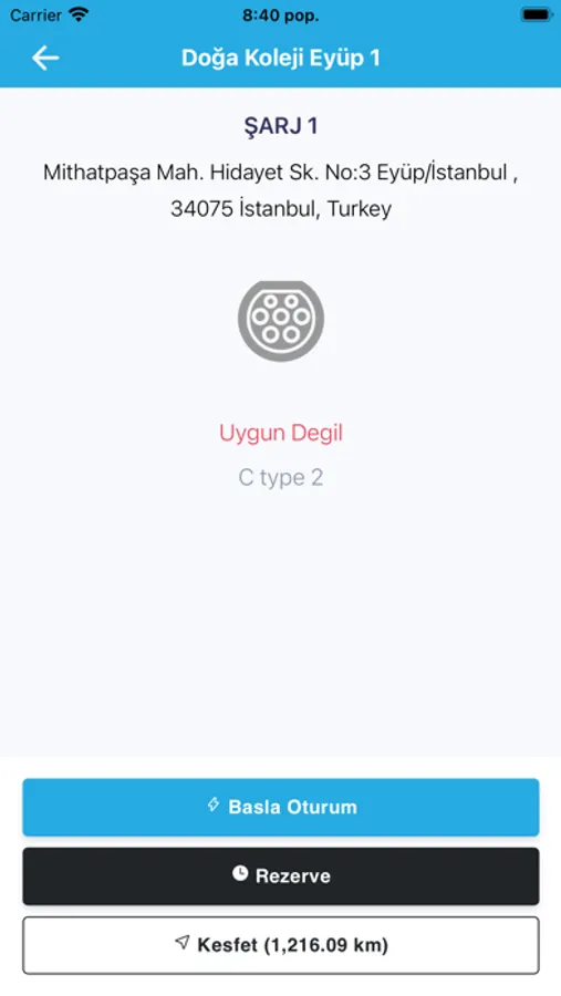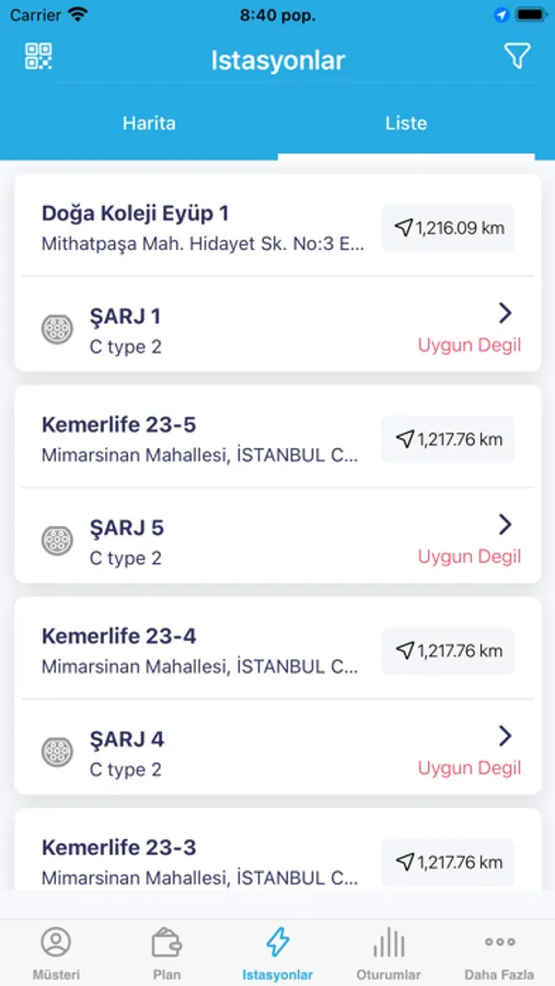 Charging Station Display: You can view the charging stations near you and check their availability.