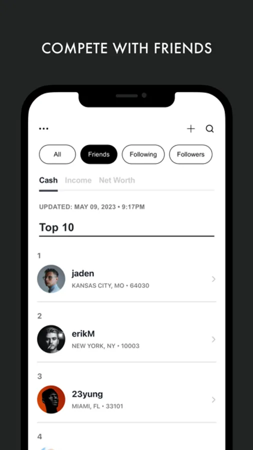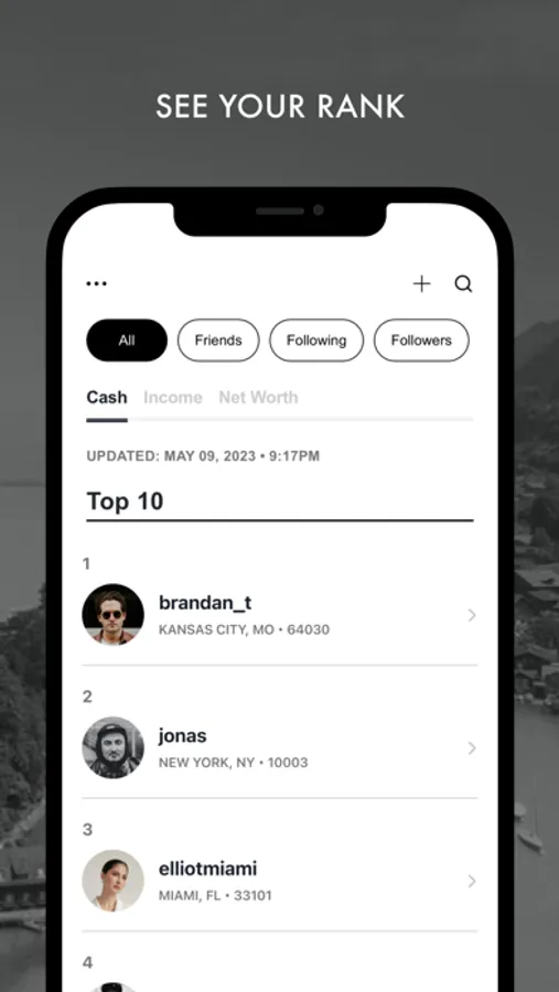 - Track your progress with dynamic wealth rankings