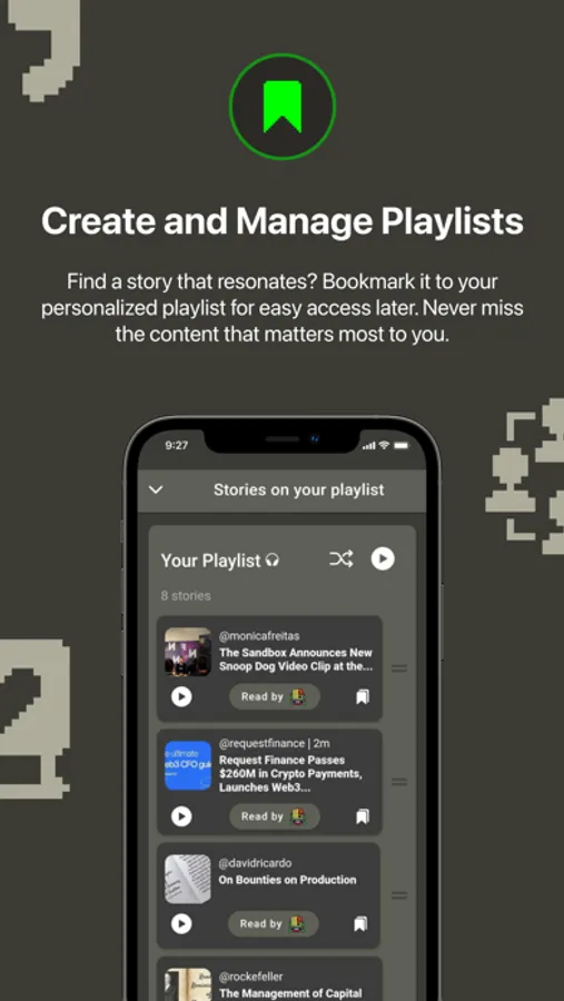 - Create and Manage Playlists: Discover a story that resonates with you? Save it to your personalized playlist for easy access later. Bookmark and save your favorite stories, ensuring you never miss out on the content that matters most to you.