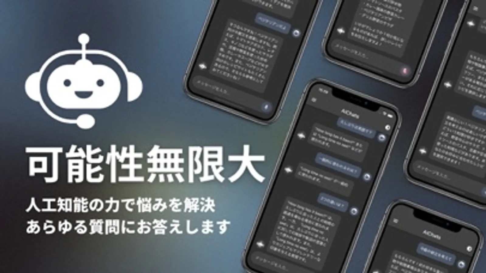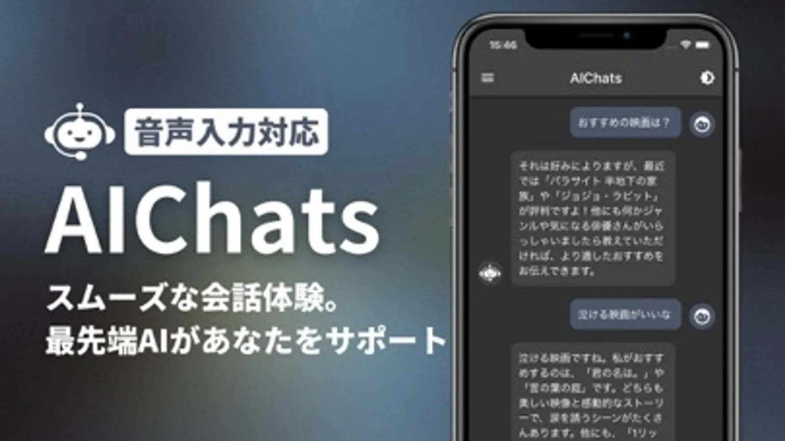 AIChatsは「AIと話せる、最先端のチャットアプリ」です。最新の人工知能である「GPT-3.5 Turbo」を搭載しており、AIが会話相手になって悩みや質問に答えてくれます。使いやすいインターフェイスで、日常のあらゆるシーンで活躍します。