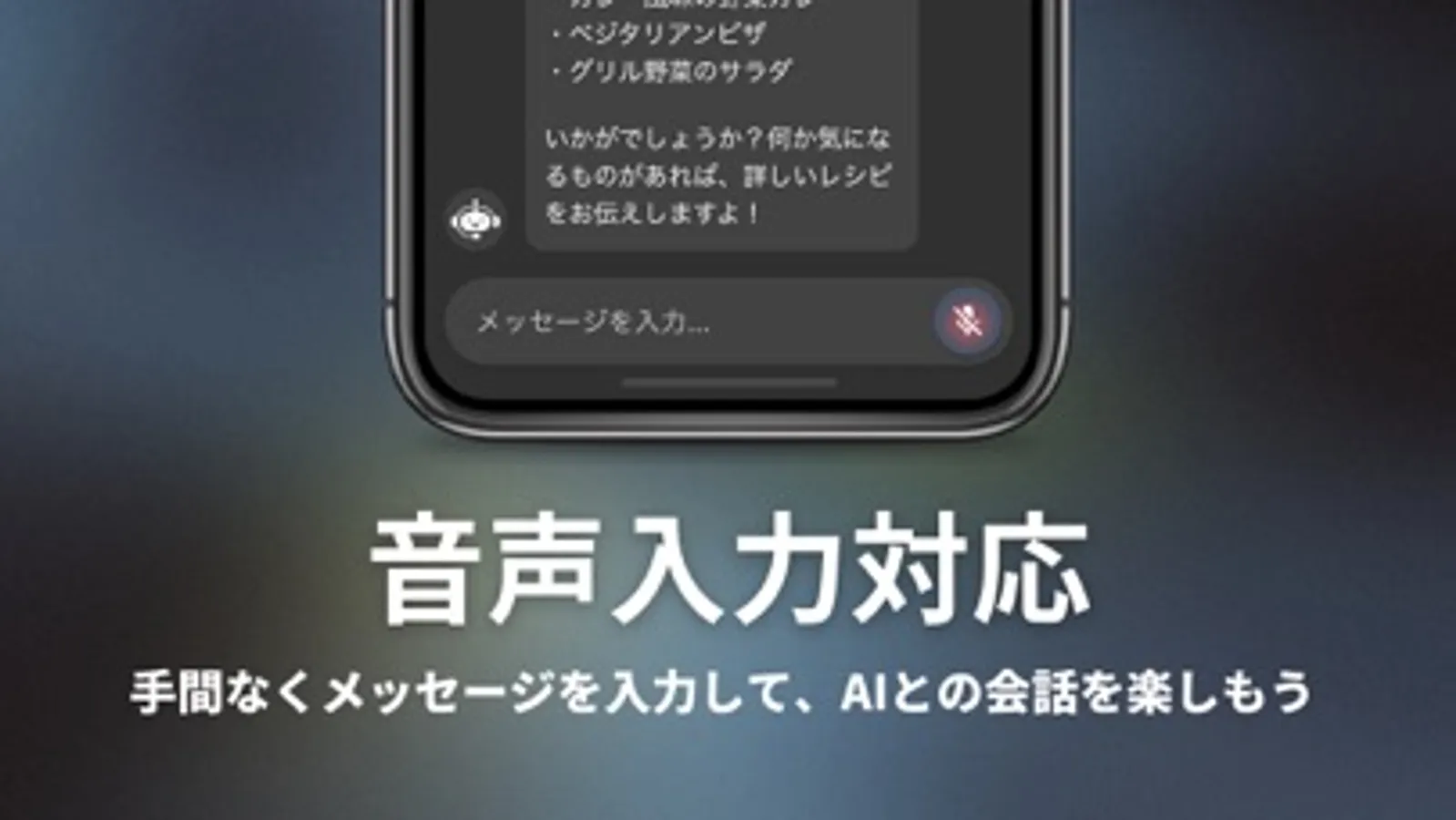 アカウント作成やログインは不要!アプリをダウンロードしてすぐチャット開始。プライバシーとデータ保護に配慮し、会話履歴は自動削除、会話データは暗号化されて安全。日本語の音声入力対応、テキスト入力では多言語に対応。