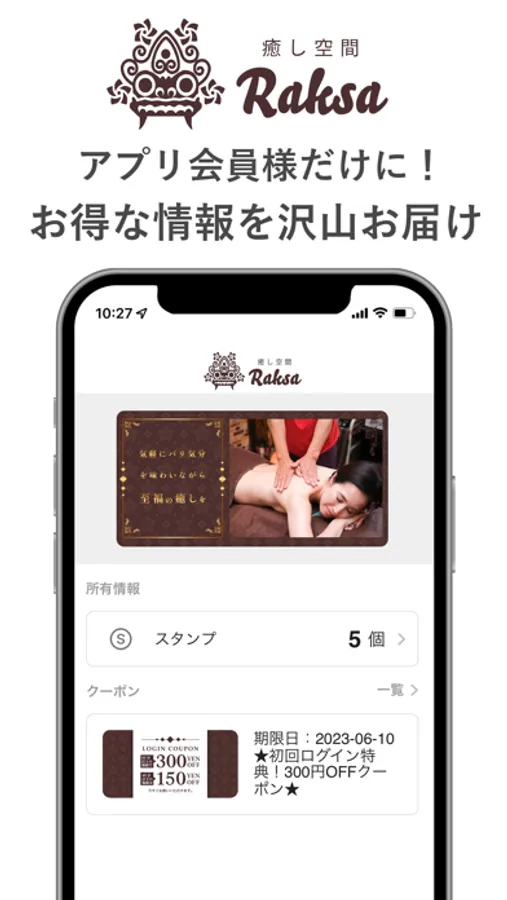 アプリを通して癒し空間 ラクサ ~Raksa~の新着情報やお得な情報を受け取ることができます。また、いつでもお手元のスマートフォンから、メニューやご希望のお時間帯のチェック・ご予約などが可能です。アプリをインストールしていただくことにより癒し空間 ラクサ ~Raksa~を、より便利に身近にご利用していただけます。