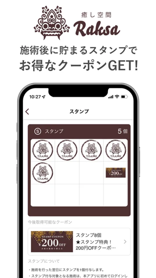 ご来店スタンプをためるとお得なクーポンが発行されます(ご利用条件がある場合がございます)