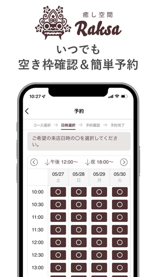 いつでもお手元のスマートフォンからご希望のお時間帯のチェック・ご予約が可能です。