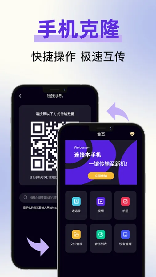 - 一键传输通讯录、照片、视频以及软件至新手机