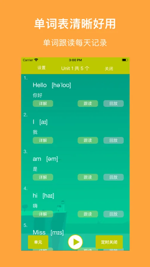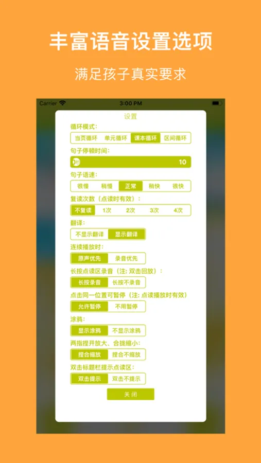 1、跟读模式:循环当页、循环单元、循环课本、区间循环