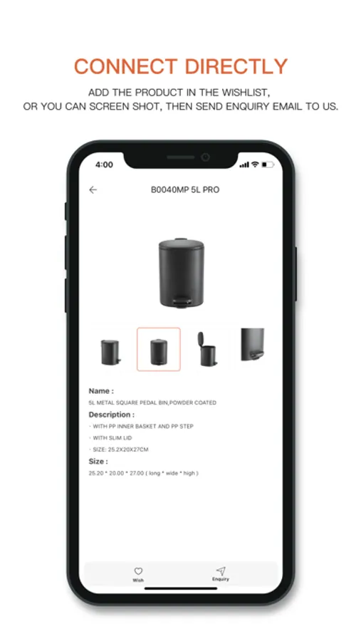 Add the product in the Wishlist, or you can screen shot, then send enquiry email to us directly by App .