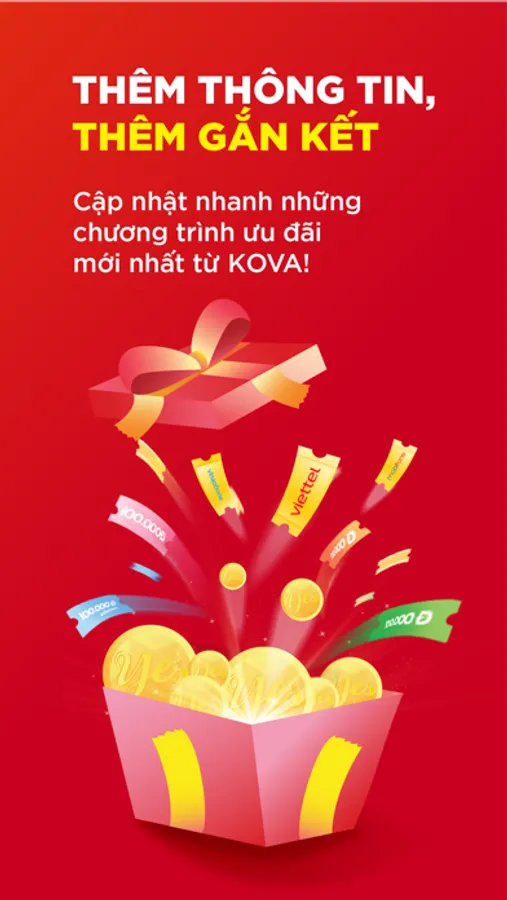 Để chăm sóc khách “ruột” tốt hơn, chúng tôi xin giới thiệu Ứng dụng KOVA YES — tích điểm đổi quà. Chúng tôi gửi gắm vào đây tấm lòng và những chương trình khuyến mãi đặc biệt, thương tặng quý khách.