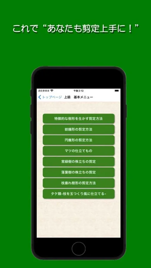 上級は、7種類の樹形の特長と 基本的な剪定および特有の剪定の仕方と 仕立て直しをマスターします。