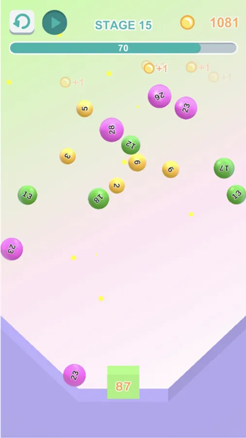 When you tap the play button, the spheres will fall, and the numbers will decrease when you touch the lines or blocks.