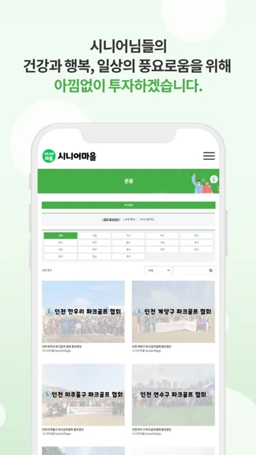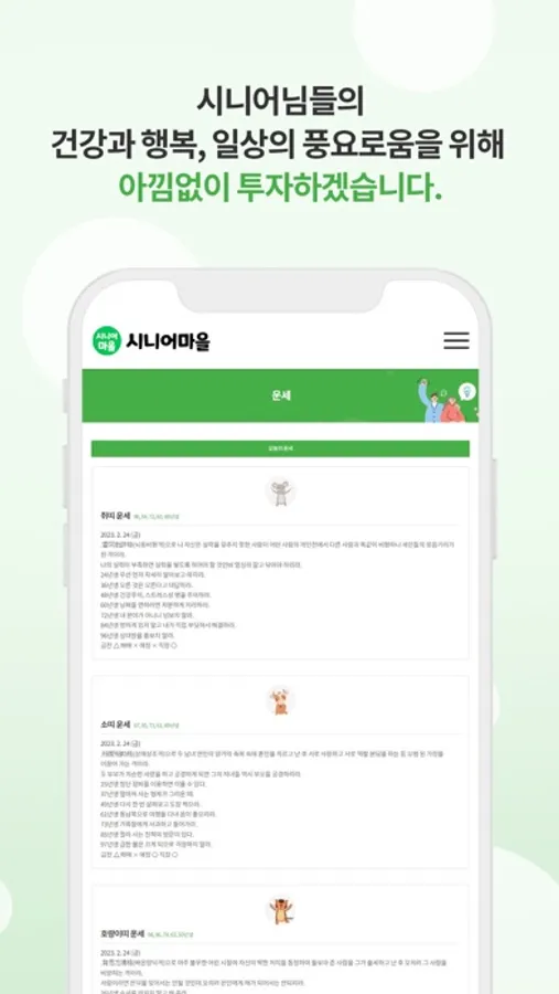 시니어님들의 건강과 행복을 추구하고 일상을 풍요롭게 할 수 있도록