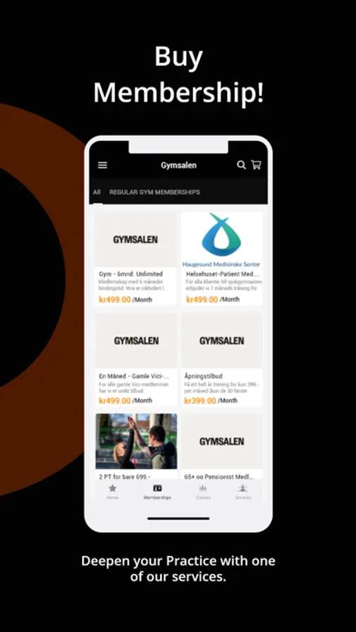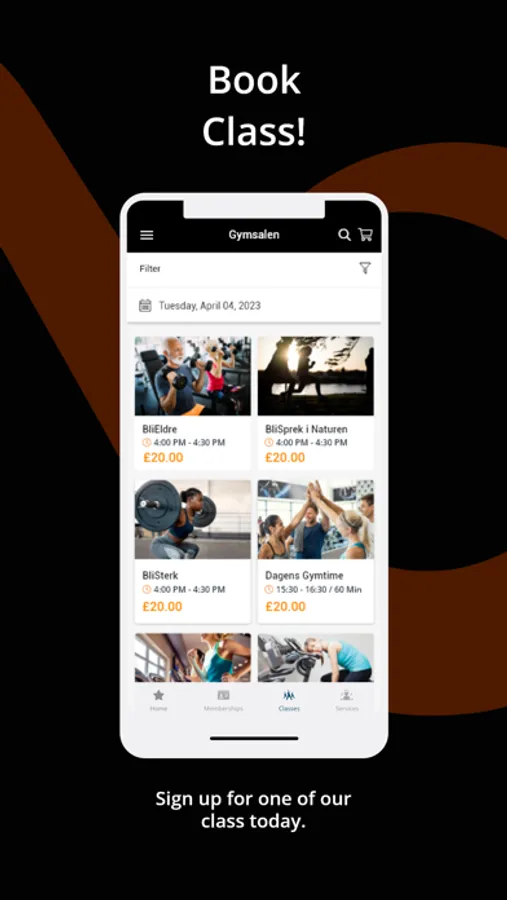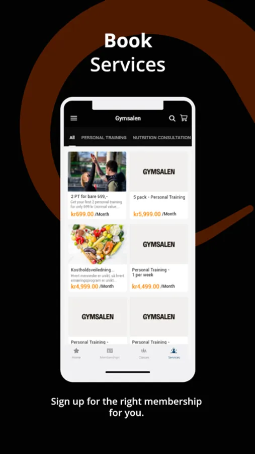 Use the Gymsalen App to book classes, book your PT, purchase items and much more!