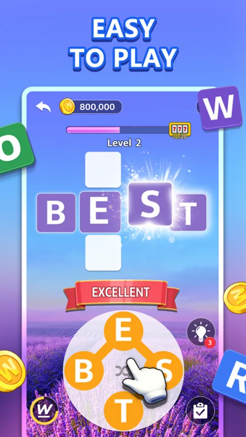 Here, you can continuously enrich your vocabulary, you only need to connect letters to form words to complete the level. While learning words, you can also unlock new scenes and visit famous scenic spots around the world. Join the challenge now!