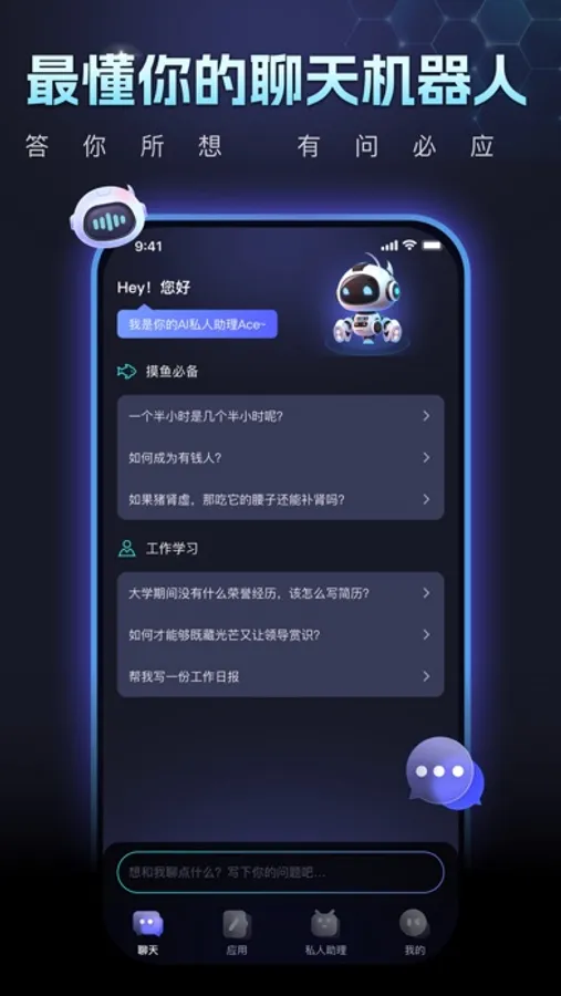 ChatAce是一款顶尖的人工智能产品,其核心技术由量子计算机驱动。它可以与您进行自然流畅的对话,为您解决各种生活问题,并能提供无限的创作灵感。