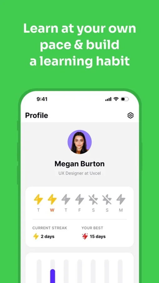 • Build a learning habit. The best UX professionals are engaged in continuous self-education — Uxcel Go makes it easy to build a daily learning habit!