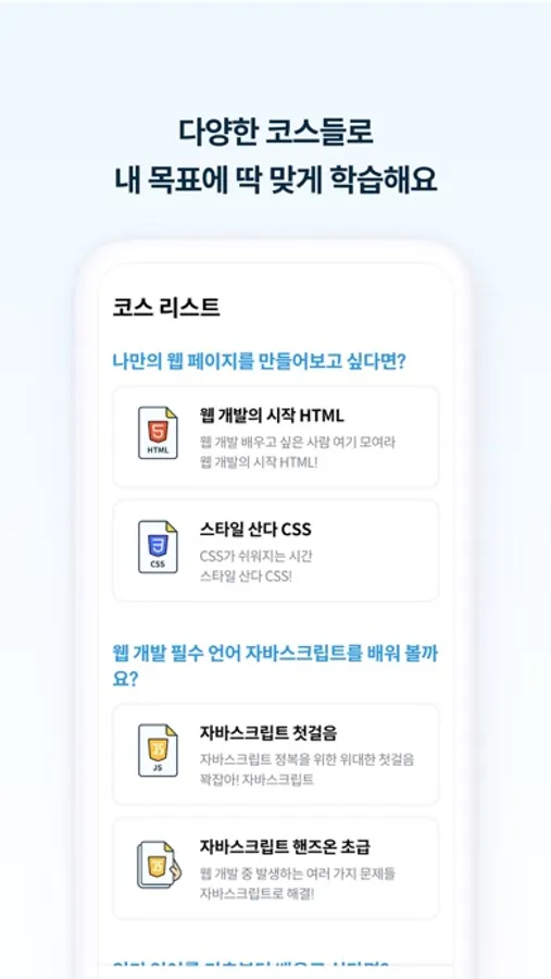다양한 코스 중에서 내가 원하는 코스를 선택해서 학습해요.