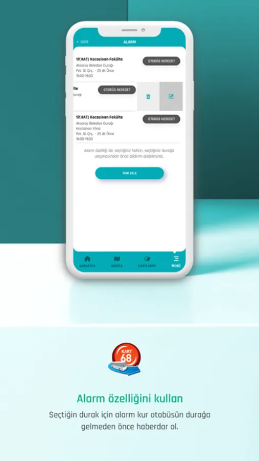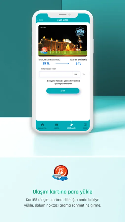 Otobüse binmek için AKULAŞ uygulamasından N Kolay sanal kartınıza para yükleyerek otobüs binişlerinizde kullanabilirsiniz.