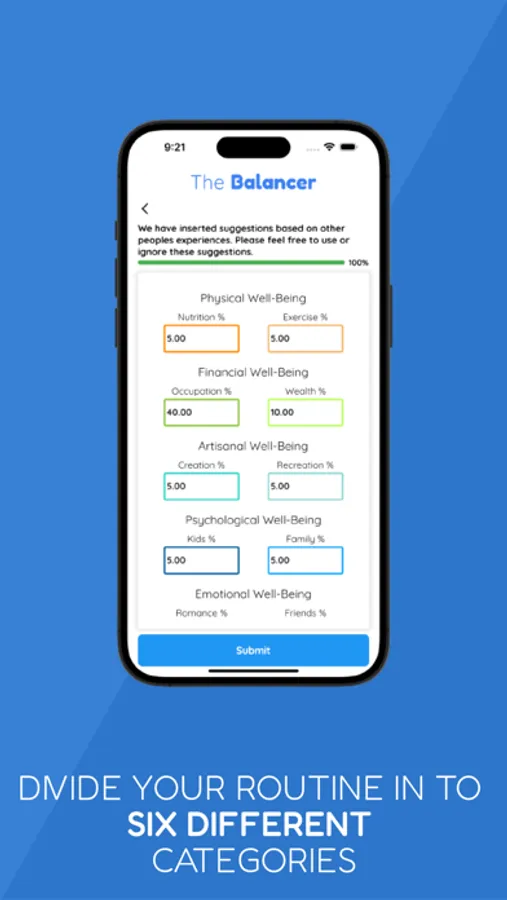 The Balancer encourages purposeful living and making active choices to improve your life. It lets you plan without having a plan. The Balancer provides data for self-evaluation and introspection.