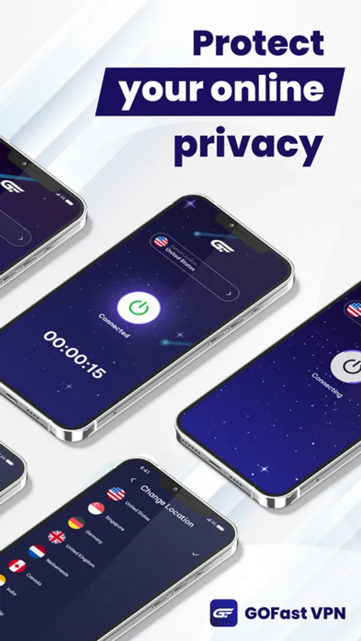 GOFast VPN is your free and unlimited VPN proxy, providing fast, stable and secure connections with servers across the globe. With just one click, connect to our user-friendly VPN app and protect your online privacy.