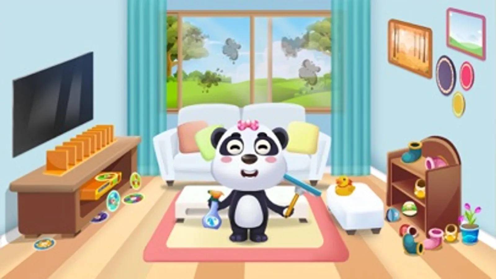 Panda Kute and her friends are in the Dream House waiting for you to join their super fun spring cleaning and home makeover party. Messy kitchen, bedroom, bathroom, laundry room, car, swimming pool, water slide, pony stable, doghouse, treehouse, fence, barbecue grill and fridge need your care and attention. Get ready to clean up, vacuum, wash, bath, mop, wipe, scrub, fix and more!