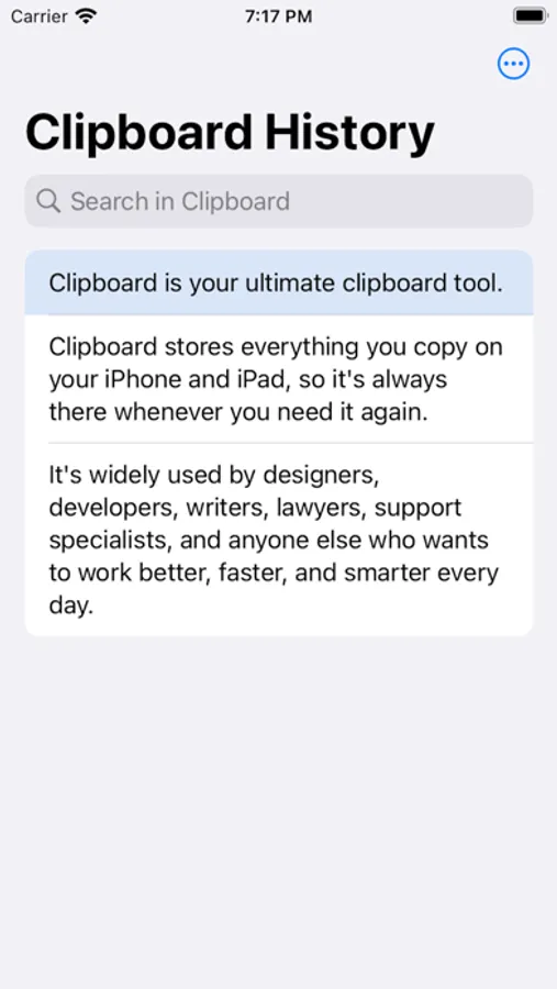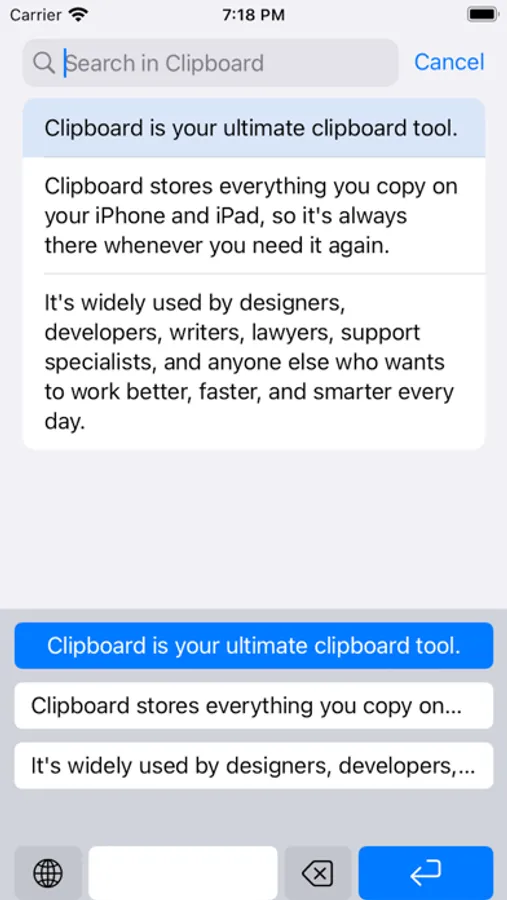 Clipboard stores everything you copy on your iPhone and iPad, so it's always there whenever you need it again.