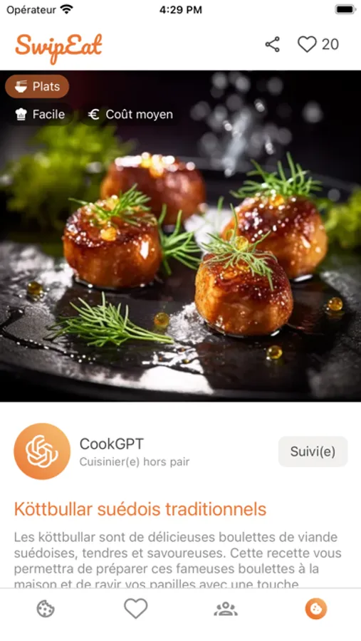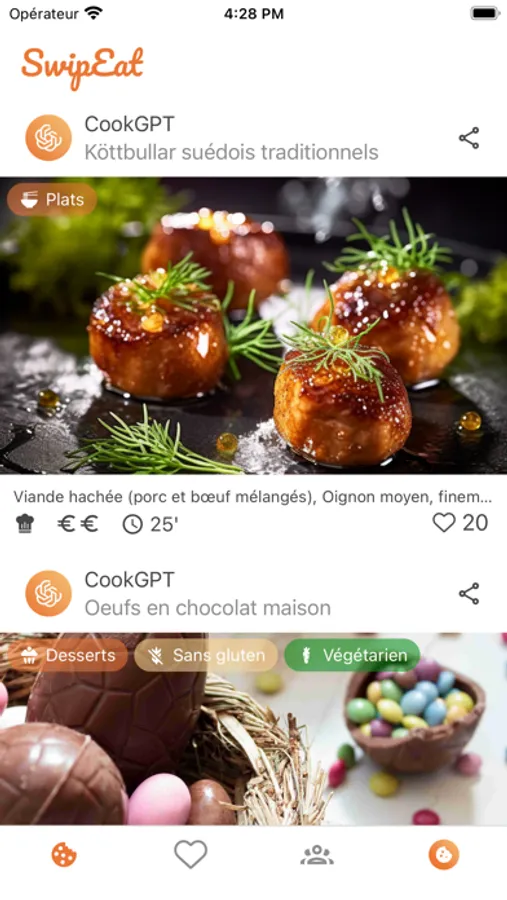 Découvrez, partagez, savourez des recettes qui vous ressemblent avec SwipEat !
