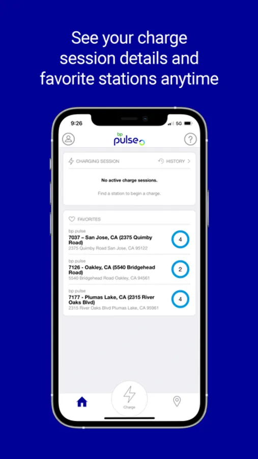 • See your charge history: Access your charge session details and favorite stations details anytime