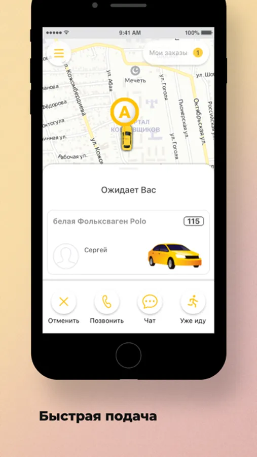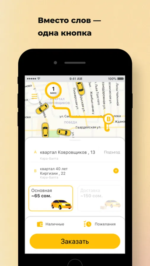 Откройте приложение, укажите адрес и закажите такси, нажав на одну кнопку.