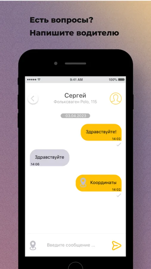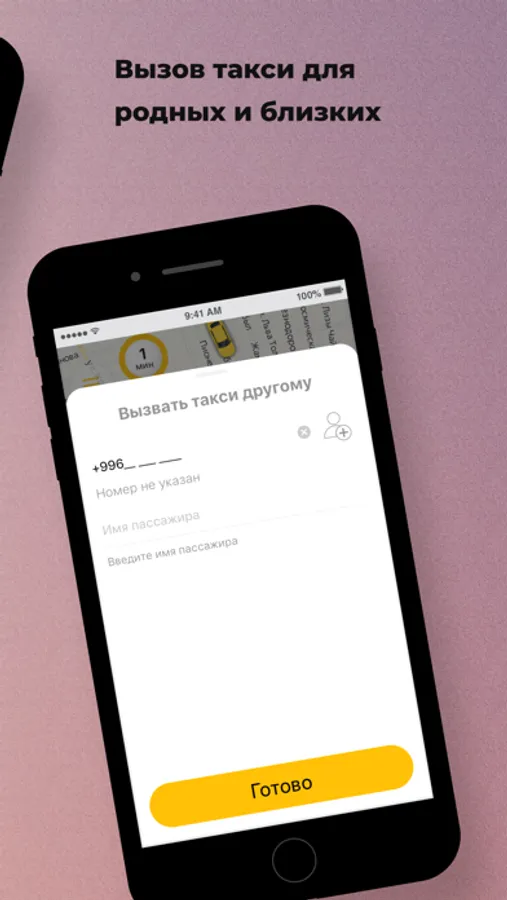 Используйте опцию “Вызвать такси другому” в разделе “Пожелания” и укажите его номер телефона. Когда такси подъедет, на указанный номер придет СМС, а вам — сообщение в приложении.