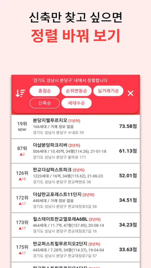 우리집의 입지 순위와 분석된 부동산 정보를 제공합니다.