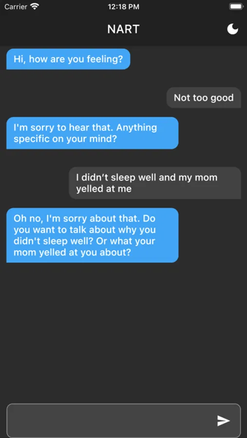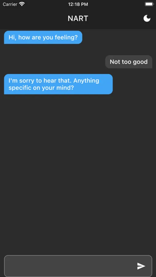 Nart is an AI companion designed to act as a conversational chatbot. Please do not share any personal or sensitive information as Nart is not intended for use in the diagnosis of disease or other conditions, or the cure, mitigation, treatment, or prevention of disease.