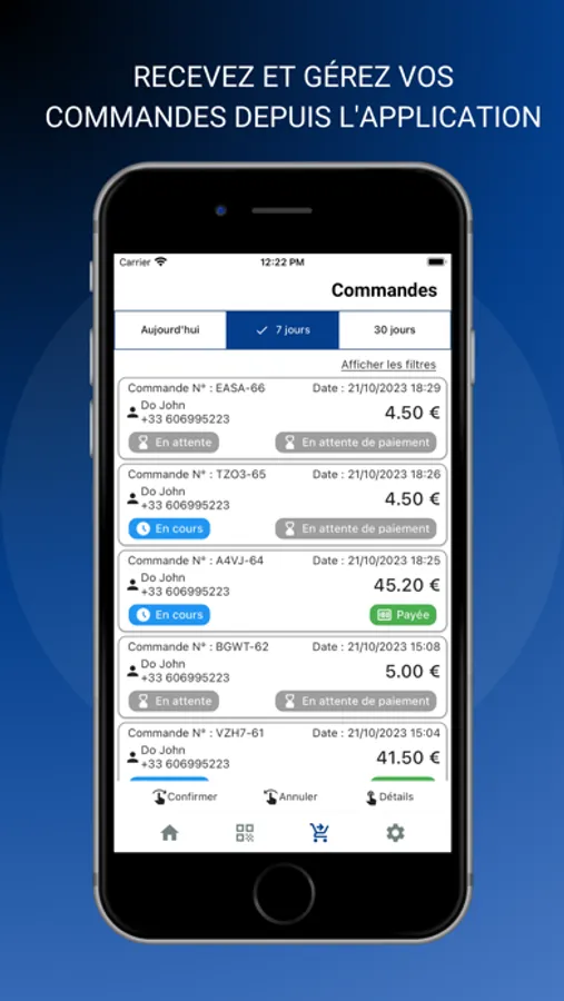 - Recevez vos commandes directement sur votre tableau de bord via l'application.