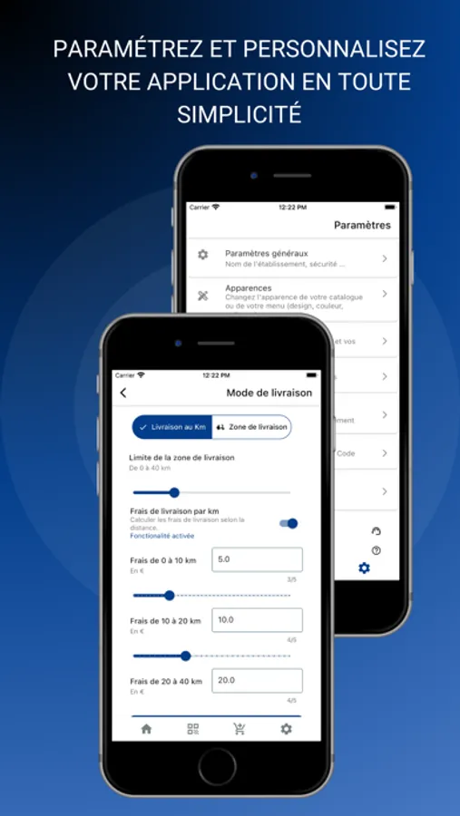 - Configurez votre établissement en ajoutant vos options, frais de livraison, codes promo, et bien plus encore.
