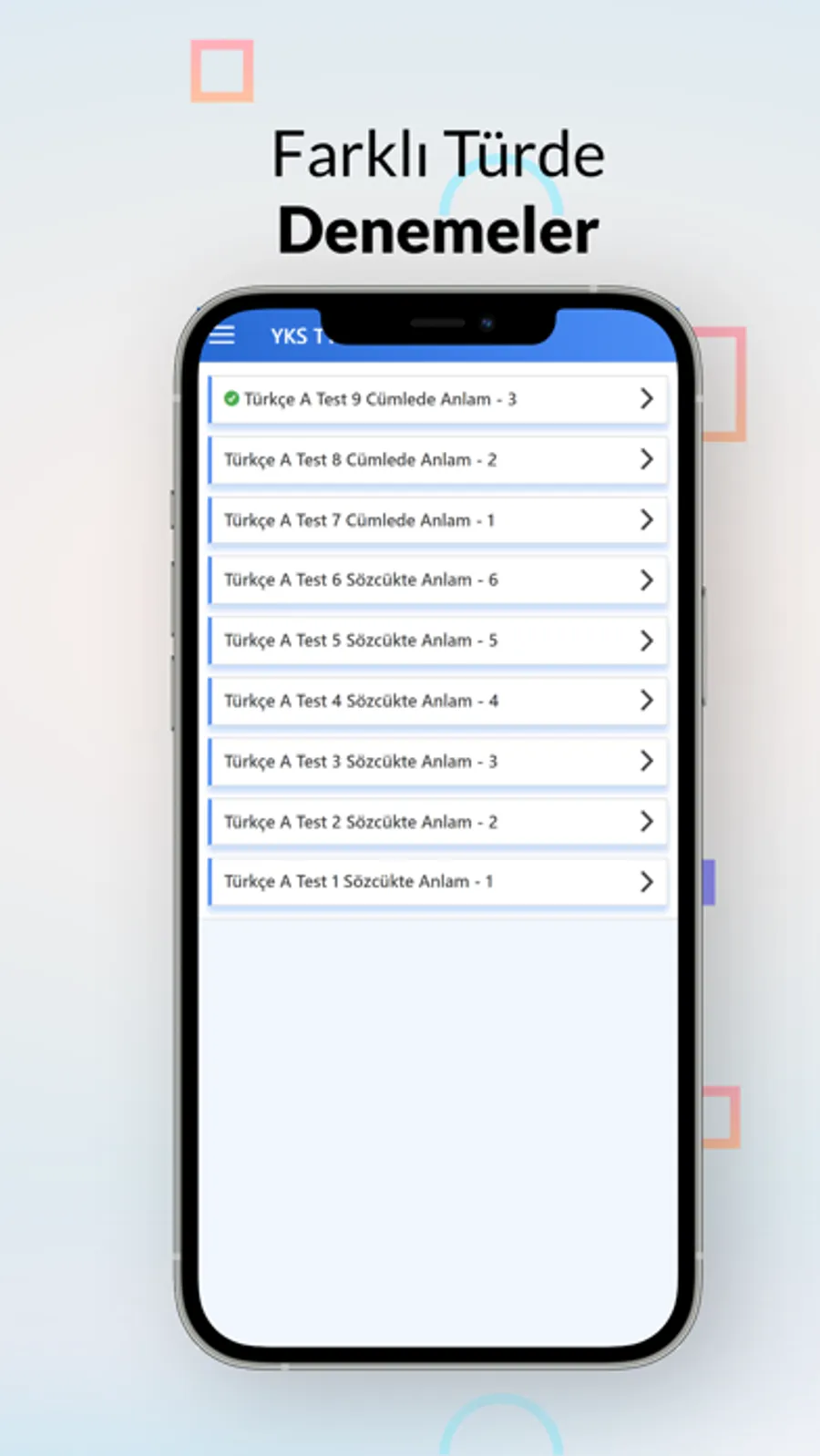 YKS (TYT-AYT) Denemesi Çöz uygulamasında 3000 üzerinde soruyla YKS (TYT-AYT) Sınavına farklı sorularla hazırlanabilirsiniz.